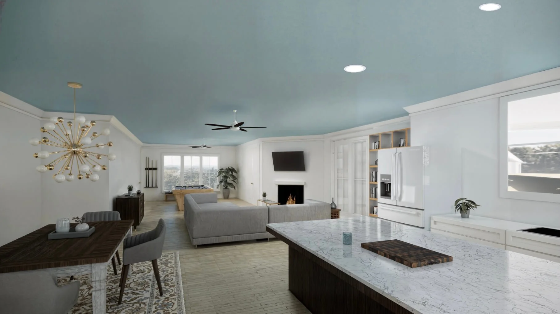 Living Room Cathedral, Kitchen, Foyer, Dining Ceilings